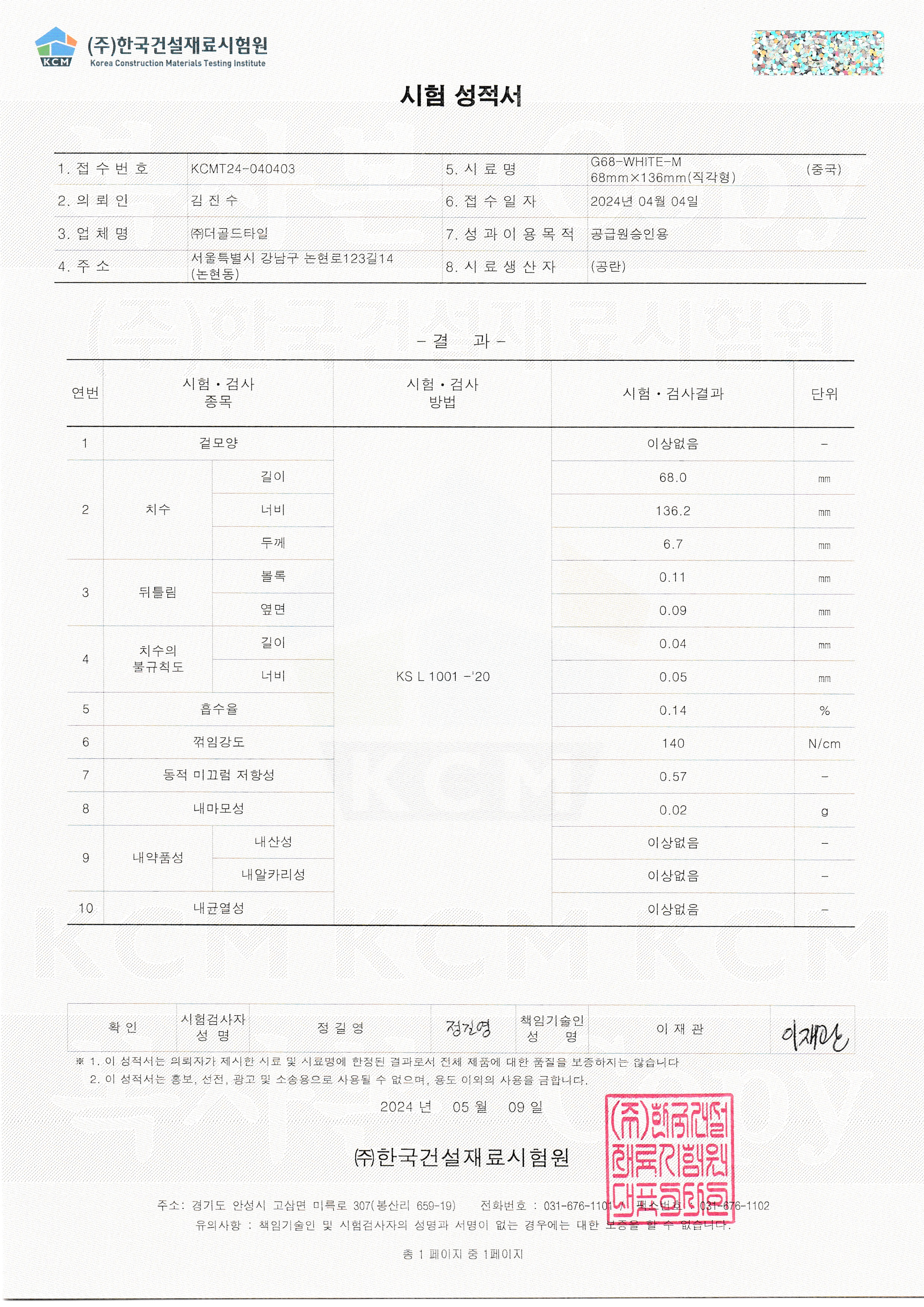 TILE SIZE : 68 x 136